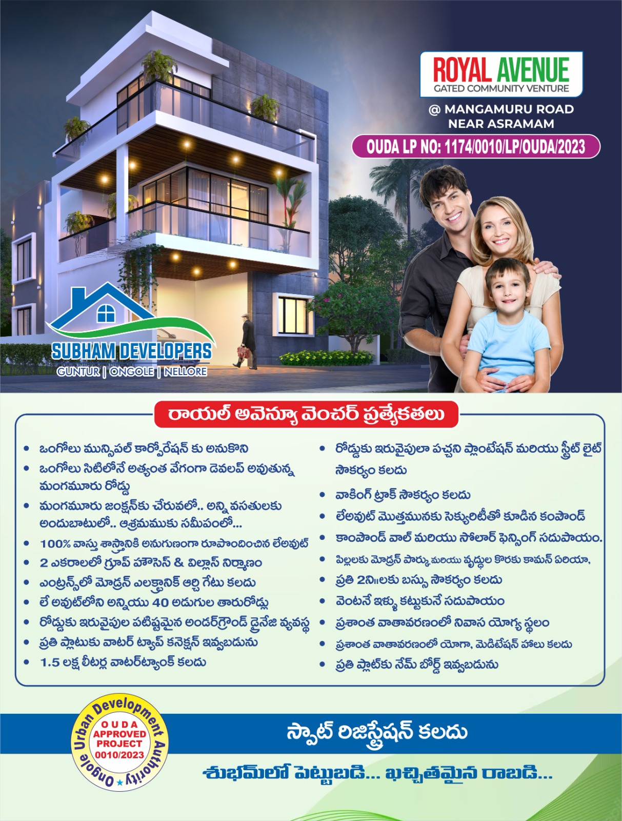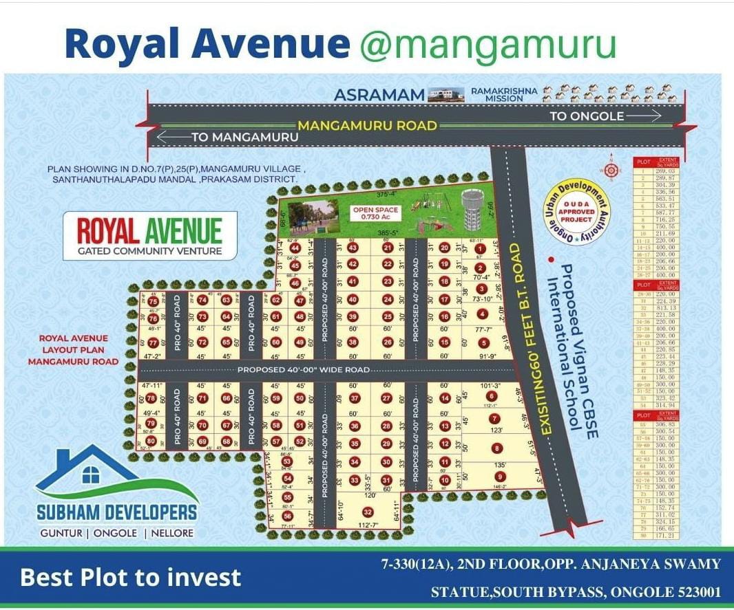ROYAL AVENUE- MANGAMURU Gated Community Venture by SUBHAMDEVELOPERS. Here are some key features of the project: