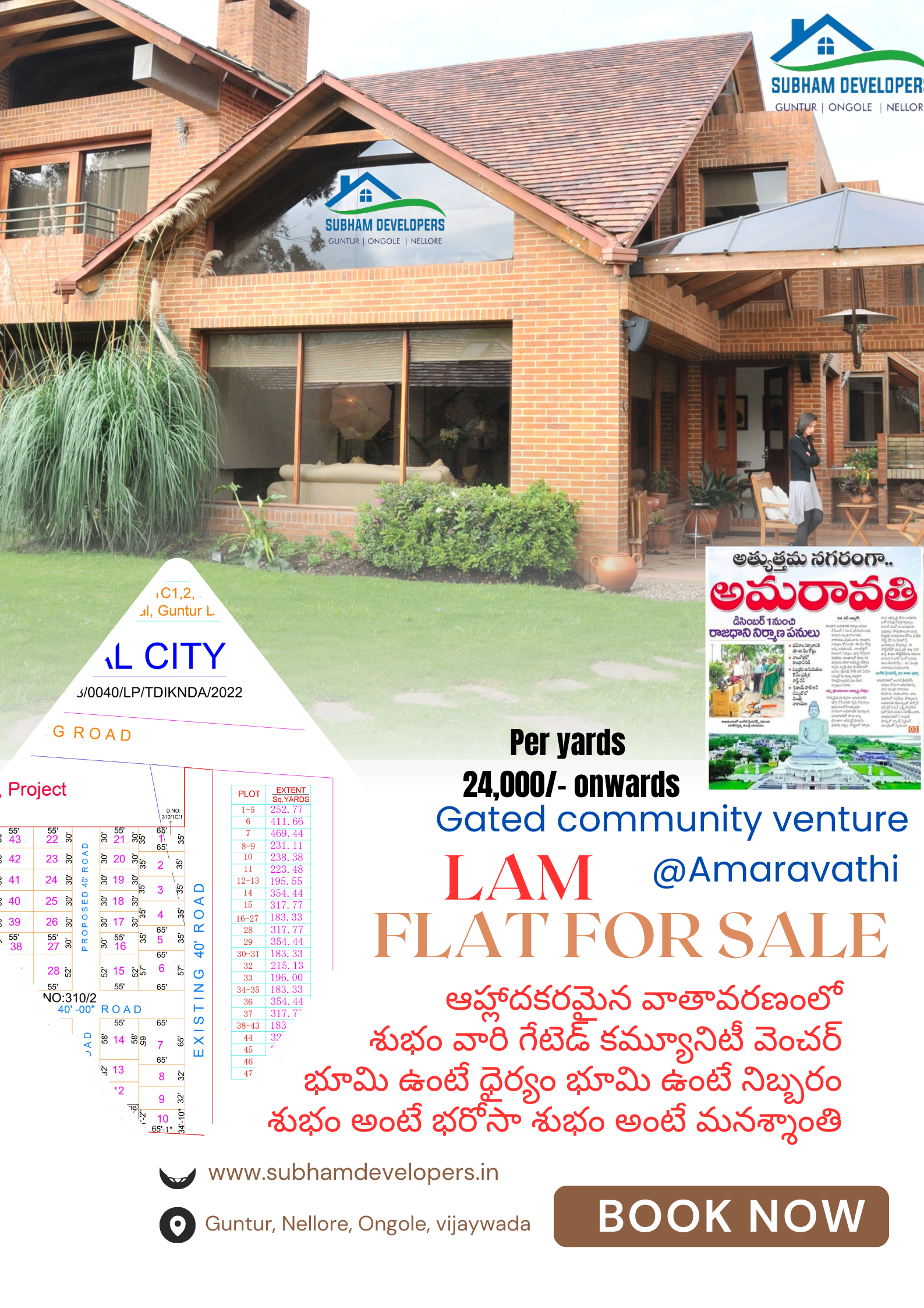 LAM GATED COMMUNITY VENTURE @ AMARAVATHI by SUBHAMDEVELOPERS. Here are some key features of the project: